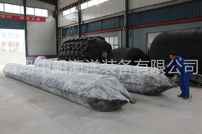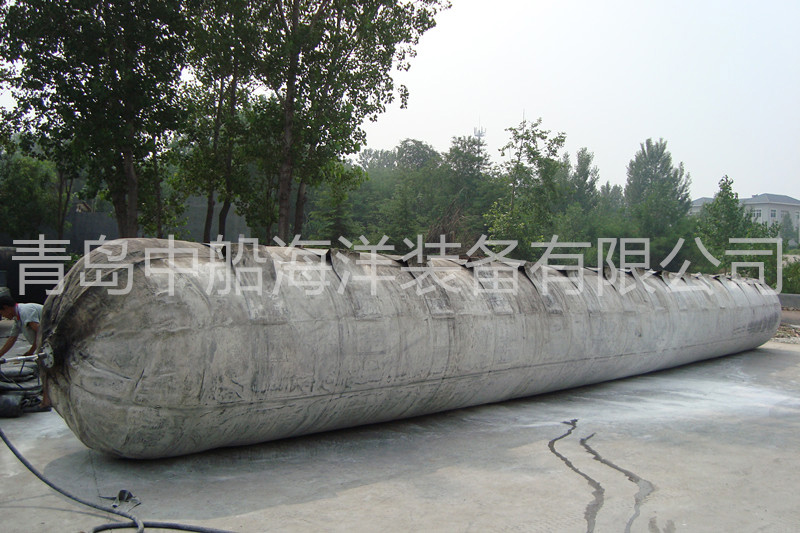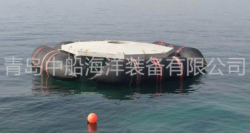 橡膠浮筒除掛在沉船固定位置或與船底千斤頂連接外,還可安放在沉船艙室內(nèi), 充氣后排除艙室的進(jìn)水以提供浮力。